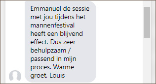 Ik heb tijdens het mannenfestival een behandeling gehad van Emmanuel.